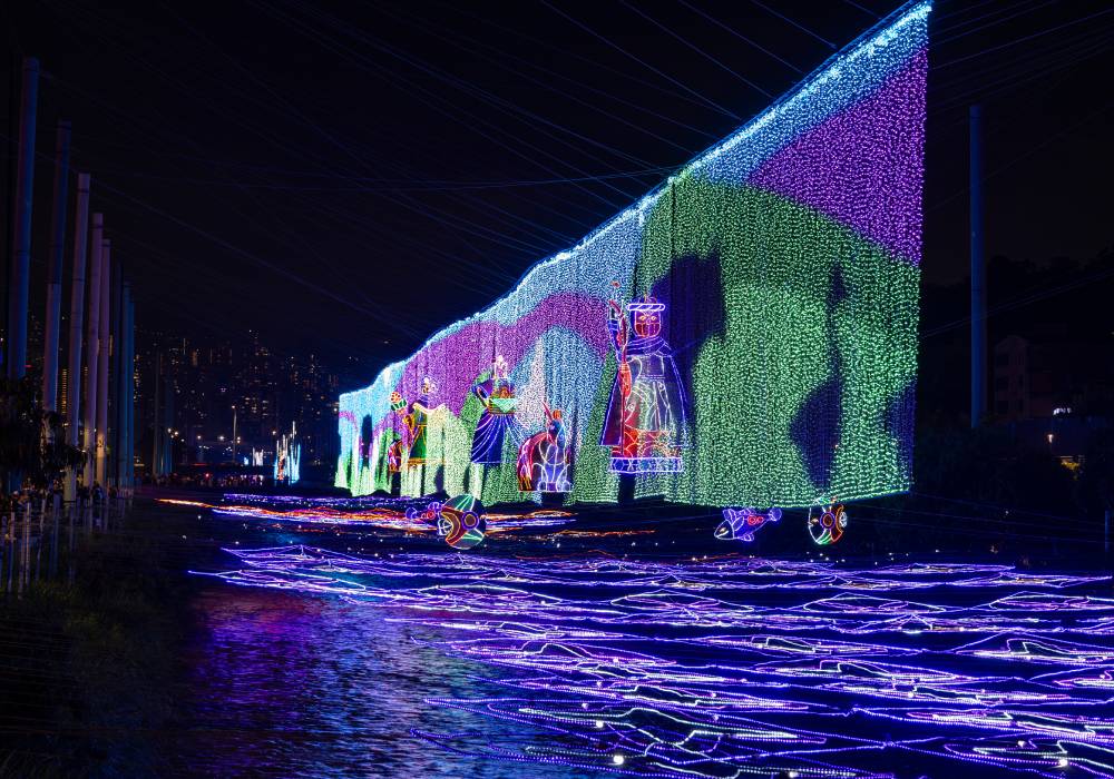 El recorrido de los Alumbrados EPM 2025 por el río Medellín está dividido en cuatro tramos temáticos que narran distintas facetas de la ciudad.